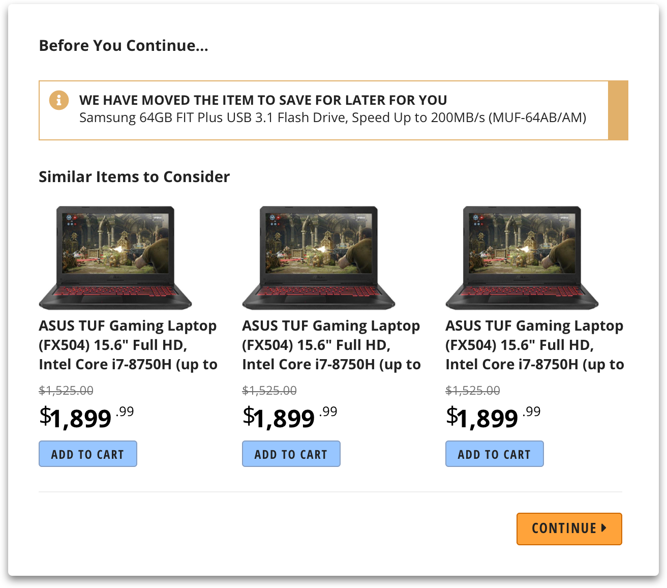 Once you chose to save it for later, the Step 2 popup window will show you some similar items to consider.